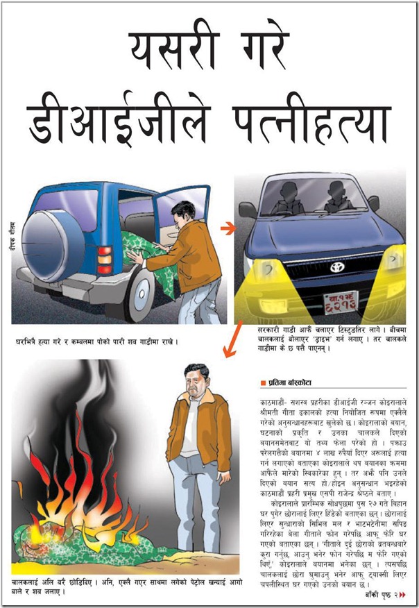 An illustrated article on how the Nepali Police DIG Ranjan Koirala killed his wife, published in Nepali daily Kantipur, seems more like a tutorial now how to kill rather than a news article.