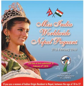If you are a woman of Indian origin, resident in Nepal and aged between 18 and 27 years; here is your chance to participate in Miss India Worldwide beauty contest. If you are eligible, you need to hurry up and send your application by February 4, 2010. The event will be held on 27th of February.