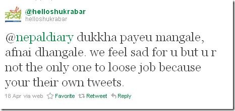 @nepaldiary – got fired due to the publication of his post in Kantipur daily. Please refer his comment in this post.