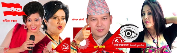 The political activities of the past include Nawal Khadka and Deepak Shrestha. Nawal Khadka is affiliated with the CPN Maoist and he had also made movies for the party. But, his movies were not much successful. Khadka is actively participating in the election campaigns. Director Deepak Shrestha is also actively participating the election campaigns of Bam Gathabandan.